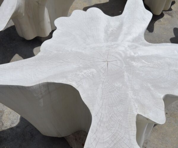 St. Barts The St. Barts Collection features an exciting new line of organic white wash and natural weathered teak furniture. The reclaimed teak is left to bake in the sun and sea salt air for over a year to achieve this unique finish. Select pieces are infused with a brilliant aqua resin that is cracked to achieve a unique quartz crystal effect. The final result evokes imagery of the white sand beaches and brilliant aqua waters of the famous French Caribbean Island. Own an Andrianna Shamaris original.